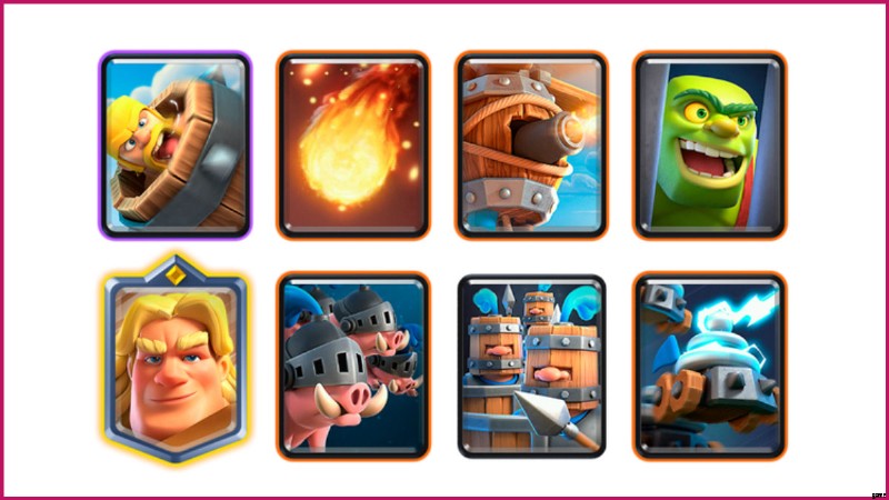 この Royal Hogs デッキは、はしごを走り回っているすべての PEKKA デッキに対するストレートなカウンターであるため、堅実な結果をもたらす可能性があります。このデッキをプレイするには、バーバリアン バレル、ファイアボール、フライング マシン、ゴブリン ケージ、ゴールデン ナイト、ロイヤル ホッグ、ロイヤル リクルート、ザッピーが必要です。