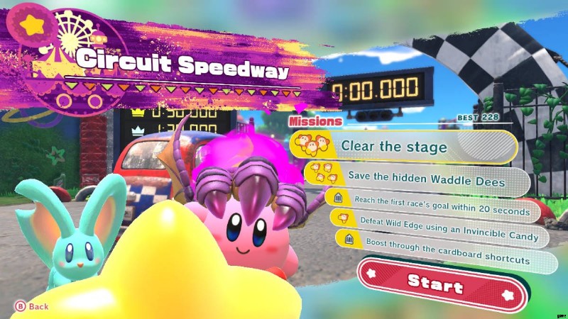 カービィと忘れられた土地のサーキット スピードウェイのミッション ガイド