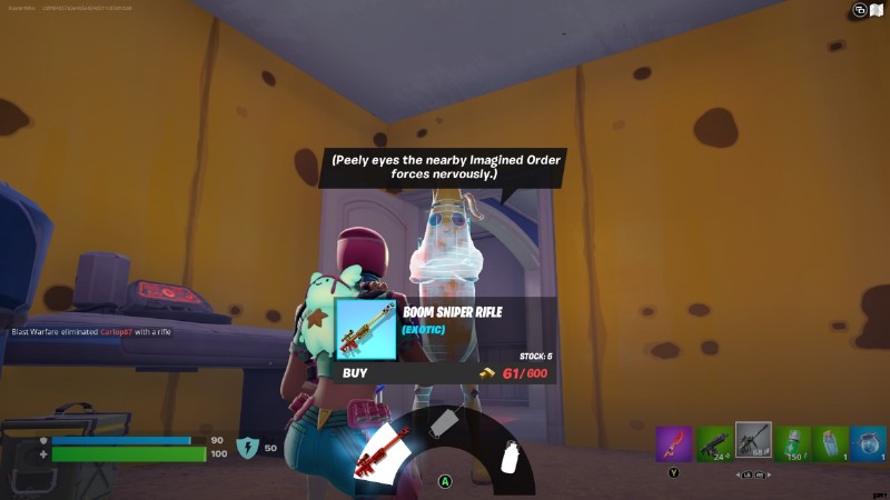 ブーム スナイパー ライフルは、マップの東側にある最大の島にいるビジターが販売しています。 600ゴールドかかります。