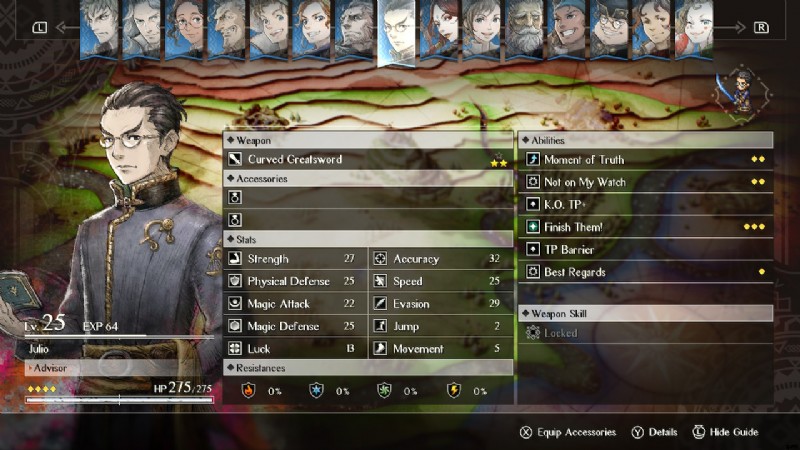 フリオは非常に興味深いキャラクターの原型です。驚くべき攻撃能力だけでなく、味方の TP を回復し、敵の TP を下げることができるユニークな能力も備えています。 .後のチャプターの敵は多くの能力を使用するため、フリオで TP を下げることは、最も困難な戦いで大きな違いを生む可能性があります.