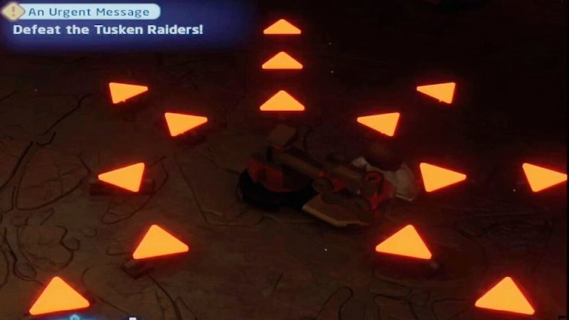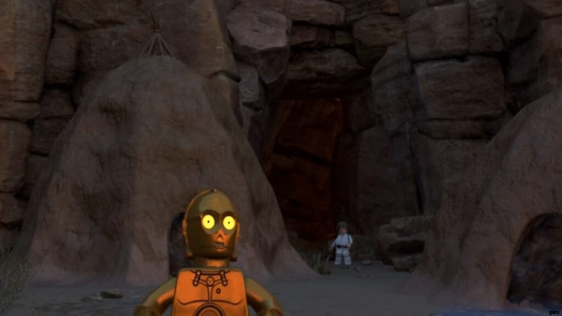 最初に行う必要があるのは、パズルを見つけることです。ゲームのストーリーは、オビ=ワン・ケノービと出会うタスケン・レイダーのキャンプにあなたを導くはずです。そこから、キャンプの横にある石の開口部が見えるはずです.パズルはその洞窟の中にあります。