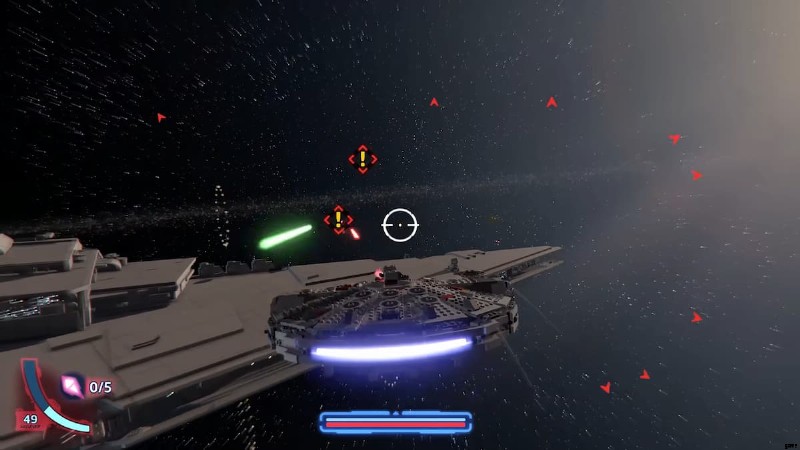 LEGO Star Wars Skywalker Saga では、プレイヤーは宇宙戦に参加できます。ただし、戦闘は非常にダイナミックで、プレイヤーがコントロールを理解するのが難しい場合があります。戦闘に参加するには、戦闘の場所に飛ぶだけです。宇宙戦は遠くから赤い丸で見ることができます。戦いから離れるには、ただ飛んでください。