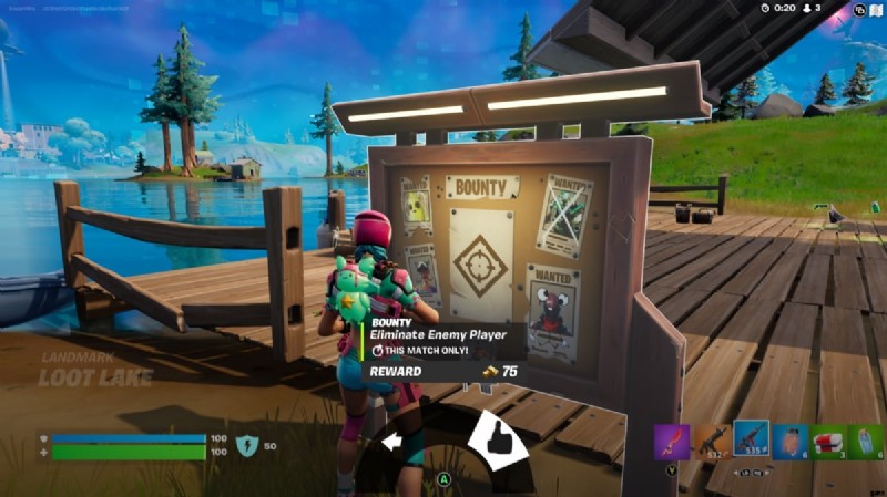 29 のバウンティ ボードのいずれかを見つけることで、プレイヤーはバウンティを完了することができます。 マップのあちこちに点在。 Command Cavern と Tilted Towers を除くすべての名前付きの場所に賞金稼ぎの場所があります。報奨金ボードは、すべての セブン アウトポスト スポットにもあります。