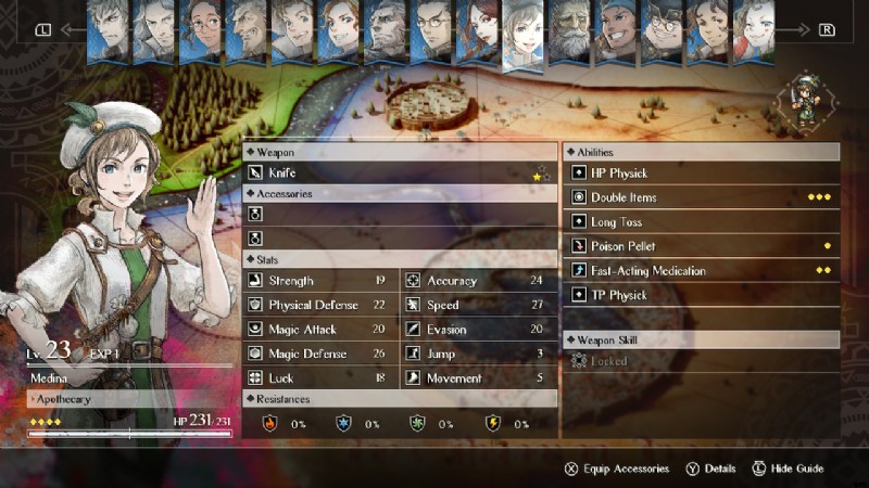 メディナは非常にユニークなキャラクターであり、回復アイテムの効力を高め、同じターンにあらゆる種類のアイテムを 2 回使用することができるため、古典的なファイナル ファンタジー タクティクスの化学者の仕事に匹敵します。 .彼女はパーティーをサポートするためにTPに完全に依存しているわけではないので、これは彼女を非常に有能なヒーラーにします.