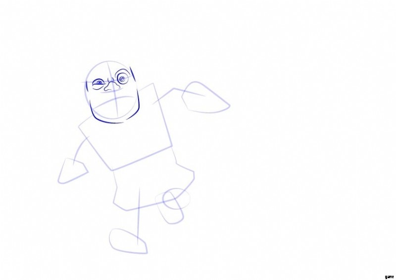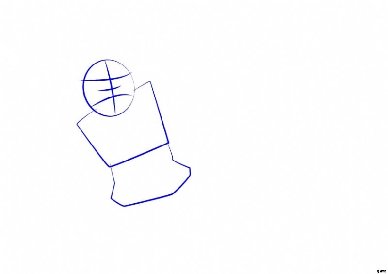 まず、顔に円を描きます。次に、円の内側に水平方向と垂直方向に 2 本の線を引きます。次に、さらに 2 本の水平線を引きます。これにより、顔の細部を正しく描くことができます。次に、Electro Wizard 本体用に 2 つの長方形を描画します。
