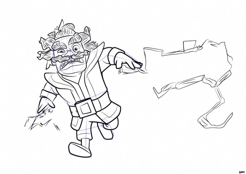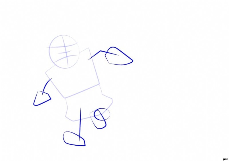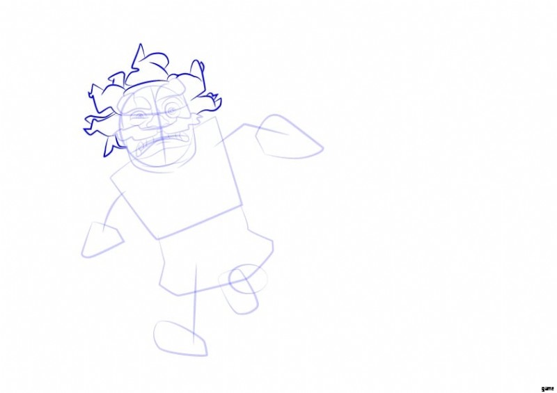 次のステップでは、腕と脚をスケッチする必要があります。数本の線を描き、いくつかの円を描きます。エレクトロ ウィザードは動いているので、左足が後ろに曲がっていることを忘れないでください。