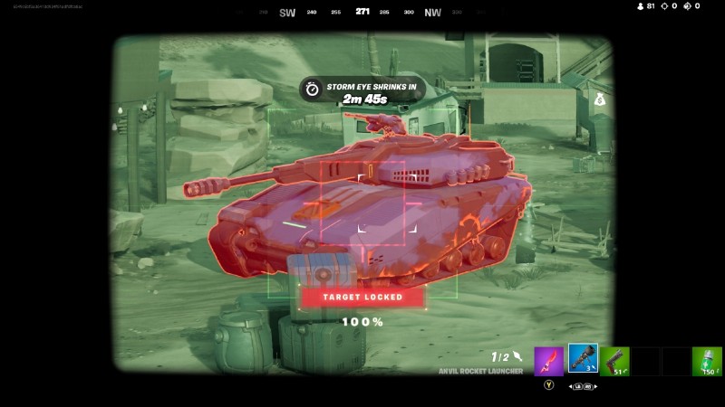 タンクをターゲットにして無力化するもう 1 つの方法は、Anvil ロケット ランチャーを使用することです。狙いを定めて戦車にロックオンし、ロケットを発射してください!
