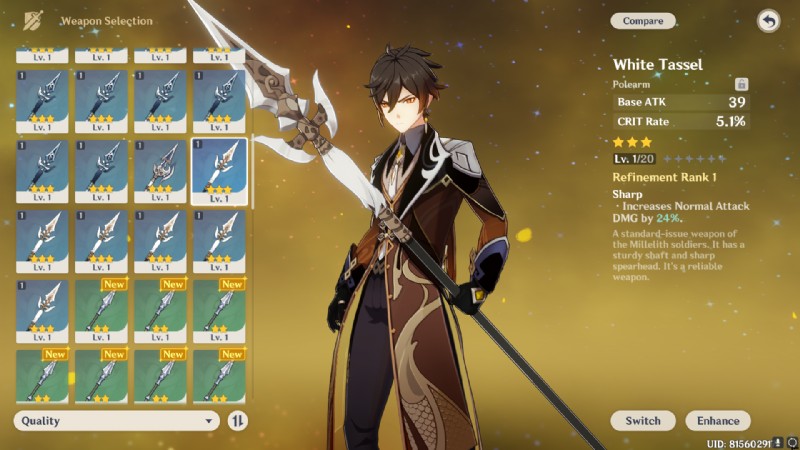 ホワイト タッセルは、ポールアームを装備する DPS キャラクター向けのアクセス可能なオプションです。セカンダリ ステータスのクリティカル レートのおかげで、プレイヤーは開始直後からクリティカル レートとクリティカル ダメージの比率をある程度維持できます。