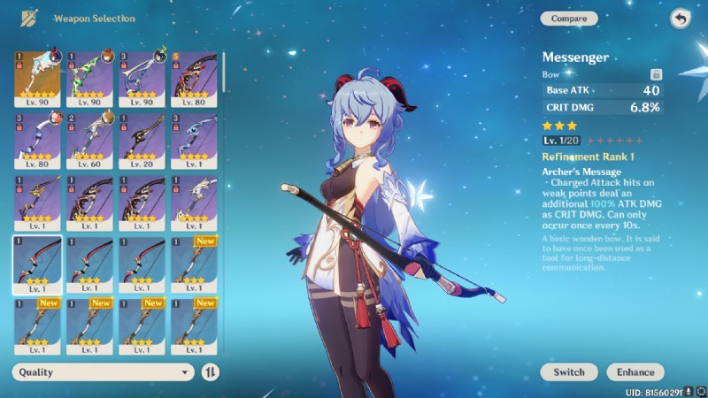 メッセンジャーは、クリティカル ダメージのステータスとパッシブがあるため、DPS の弓のキャラクターに最適です。この弓は、プレイヤーがより良い4つ星または5つ星のオプションを手に入れるまで、ほとんどの弓を振るうキャラクターでうまく機能します.ゲーム序盤では、ほとんどのモンスターに弱点があるため、プレイヤーはメッセンジャーのパッシブを頻繁に使用できます。