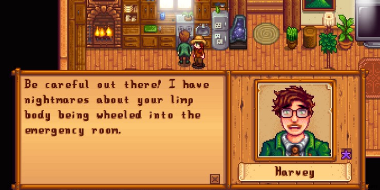 ハービーは、ジャンクフードが嫌いで、患者の世話をする親切な医者です。病院でこのキャラクターに会うことができます。彼との関係を始めるには、彼に次のアイテムを渡す必要があります:コーヒー、ワイン、スーパーミール、トリュフオイル、ピクルス。