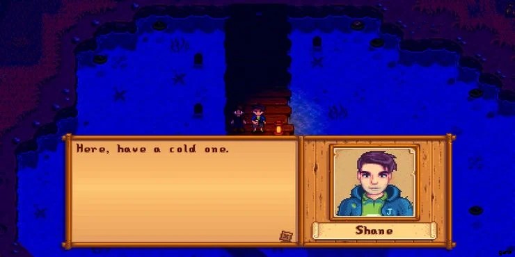シェーンは、ピザ、ビール、コショウが大好きな素晴らしい男です。彼との関係を始めるには、これらのアイテムを渡してください。シェーンは Joja Mart で働いており、そこで彼を見つけることができます。