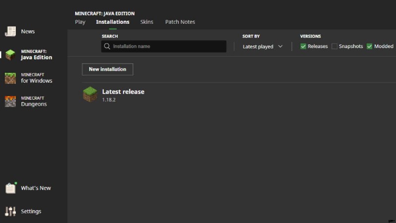 - PC (Java/Windows):Java Edition を使用している場合は、Minecraft のインストールを更新する必要があります。 公式ランチャーを使用。ゲームのインストールはデフォルトで「最新リリース」に設定されている必要がありますが、そうでない場合は、必ずそれに設定してください。