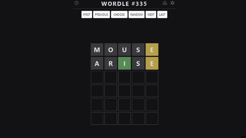最初のサイトは Wordle Archive です .過去の遊び方を調べたことがある場合 Wordle パズル、これはおそらく最も多く出てくるウェブサイトです.古い Wordle を再生するために作成された最初の大きな Web サイトの 1 つでした パズル。特定のパズルを選んでプレイすることも、ウェブサイトにランダムに選んでもらうこともできます。