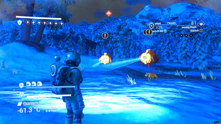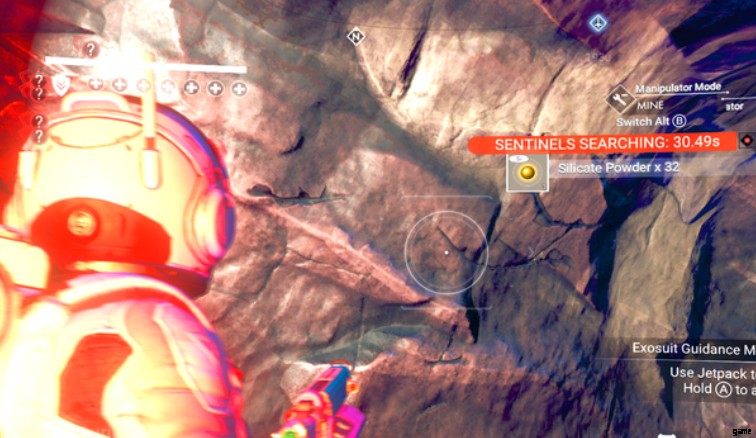 - 船に乗り込み、少し飛んで着陸し、船から逃げることができます。すぐに行うと、センチネルは宇宙船に気を取られてスキャンを開始し、検索バーが下がるまで待つ必要があります.