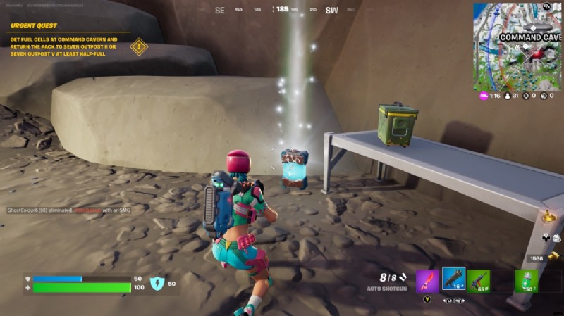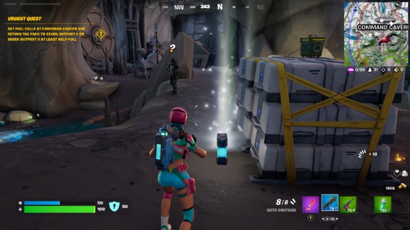 バックパックを見つけたら、コマンド洞窟に向かい、2 つの燃料電池を手に入れましょう。 裂け目やヘリコプターを使って、すぐにそこにたどり着きましょう!コマンド洞窟に点在する燃料電池を見つけてください。最も見つけやすいのは、長い川とトンネルがある Command Cavern の入り口のすぐ内側です。入って右に進みます。入口のすぐ内側に 1 つあり: