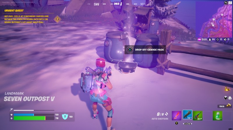 両方の燃料電池を入手したら、すぐに前哨基地 V に戻ります。燃料電池が 50% を下回る前に戻る必要があります。前哨基地内の 3 つの場所のいずれかにチャージ パックを降ろしてください: