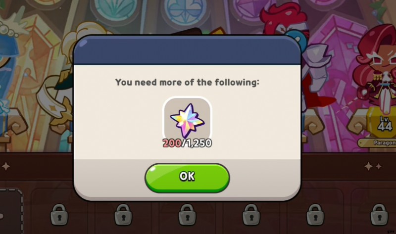 - Paragon Cookie がレベル 50 の場合、見習いも 50 にレベルアップします。ただし、この増加は Cookie のレベルにのみ影響し、スキルを向上させるためにスキル パウダーを使用する必要があります。レイディアント シャードを使用すると、見習いの数を増やすことができます。
