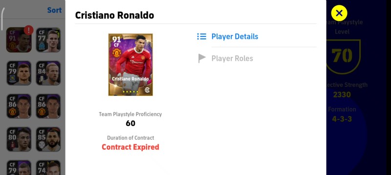以前のアップデートでは、プレイヤーの契約をプレイした試合数で更新できました。これにより、プレイヤーはチームでさらに 10 試合をプレイできるようになります。新しい更新では、これは日に変更されました。そのため、eFootball Mobile 2022 で契約更新を使用すると、以前のように 10 試合を追加する代わりに、チームでのプレーヤーの可用性に約 60 日が追加されます。これは非常に優れており、365 日まで延長することもできます。