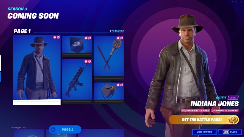 インディがフォートナイトに来た理由は、彼の新しい映画が 2023 年に公開されるためです:インディアナ ジョーンズ 5. この映画のクロスオーバー キャラクターのロックを解除するには、フォートナイト プレイヤーは最初にチャプター 3 シーズン 3 のバトル パスを購入するか、フォートナイト クルーのサブスクライバーになる必要があります。バトル パスの価格は 950 V Bucks で、驚くほど豊富なスキン、バック ブリンブリン、つるはしなどが含まれています。