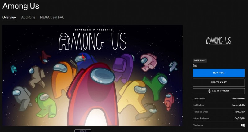 Among Us は Epic Games Store で 1.99 USD で購入できます。一方、最も安いスター パックは 0.99 USD です。私たちの Epic Games Store アカウントには、Among Us はありませんでした。本編の代わりにスターパックを手に入れてみました。