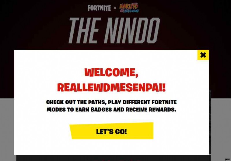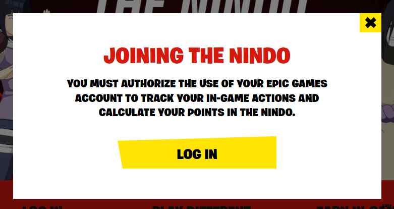 Paths of Nindo を完了する前に、Fortnite X Naruto Collaboration Web サイトにアクセスし、Epic Games または Fortnite のプレイに現在使用している他のアカウントを使用してログインします。それが完了したら、ニンドウの各パスの下に記載されているチャレンジを完了して、フォートナイトでマンダグライダーを入手してください.