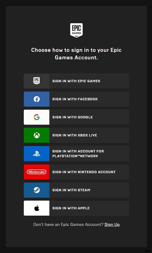 - フォートナイトのプレイに使用するアカウントを選択し、ログイン プロセスに進みます