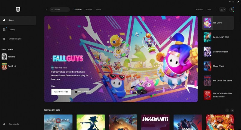 Epic Games Launcher による Fall Guys のダウンロード プロセスが完了したら、左側のメニューまたはデスクトップ アイコンからプレイできます。