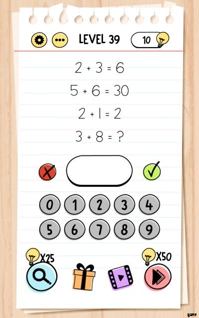 答え:40. 隠された数字を見るには、岩をドラッグして邪魔にならないようにします。