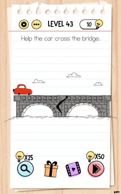 答え:車をタップして運転を開始します。指をクラックに当てて橋を固定します。