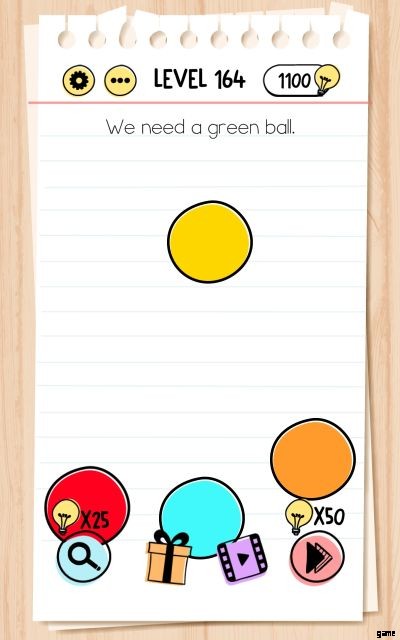 答え:青いボールが黄色のボールと衝突して緑色に変わるまで、黄色のボールをタップしたままにします。