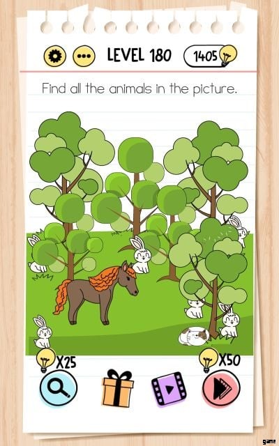 答え:木の中の 6 匹のウサギ、1 匹の猫、1 匹の馬、そしてヘビをタップします。ヘビを動かして馬を怖がらせると、ネズミが現れます。マウスをタップします。