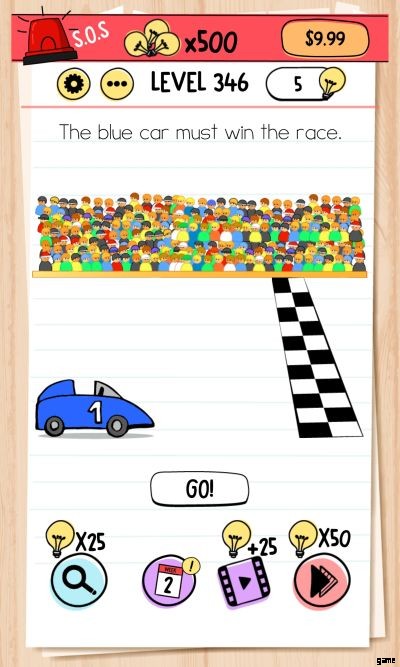 答え:観客から 2 つのポンプ ハンドルを黄色の車にドラッグし、2 つを赤い車にドラッグします。 [GO] をタップします。