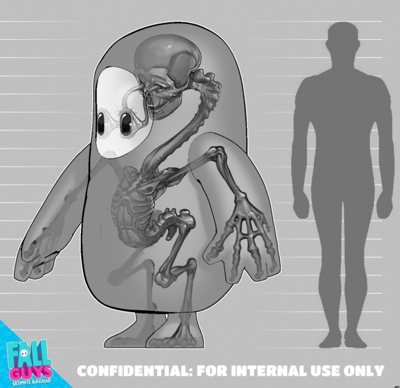 2 人の Mediatonic のコンセプト アーティストが、Fall Guys の 2 つの可能な解剖学を考え出しました。そして、それらは非常に異なっています。チューダー モリスは、フォール ガイの骨格が人間と鳥のハイブリッドのように見えるアートを作成しました。それは十分に不気味に見えます。しかし、アッシュ・ケリンズはフォール・ガイをキュートな黄色いハートを持つピンクのスライムとして描いた.