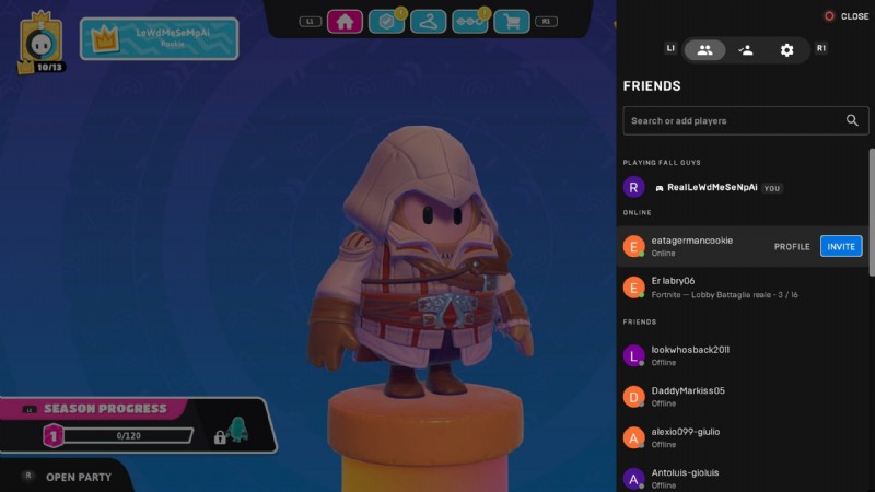 また、招待状を送信した後でも、友達は招待状を受け取っていません。その場合、PS4 および PS5 の Fall Guys でフレンドを招待する別の方法を試すことができます: