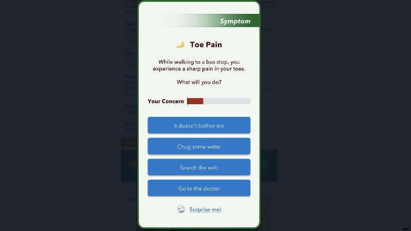 これの最も一般的な原因は、何らかの健康状態です。懸念される症状が発生すると、ゲームは親切に通知します。 できるだけ早く医師の診察を受ける必要があります 問題に対処する .安い医者はあなたの状態を悪化させる可能性があるので、常に評判の良い医者と一緒に行きましょう.