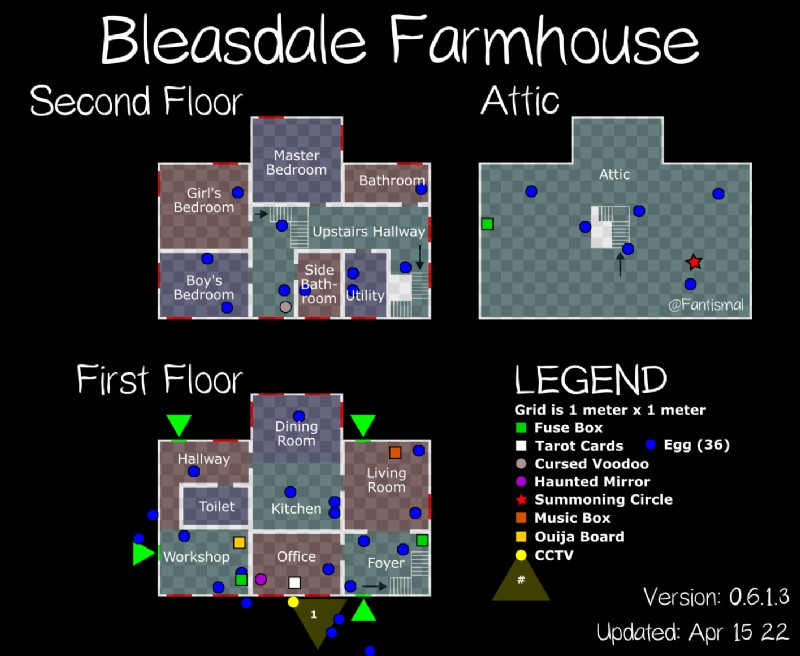 Reddit ユーザーの Fantismal に感謝します 、各マップで呪われたオブジェクトが見つかる場所を示す最新のマップ (バージョン 0.6.1.3 まで) があります。各画像をクリックすると Imgur に移動し、拡大して各呪われたアイテムがどこにあるかを正確に確認できます. Imgur で提供されているキーを使用して、さまざまな呪われたオブジェクトを見つけることができる場所を確認します。
