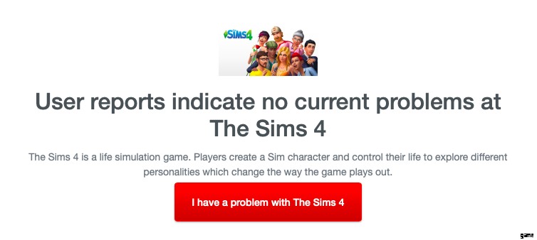 最初に確認する場所は、DownDetector などのサイトです。このサイトは、実際に使用しているすべてのゲームまたは Web サイトのサーバーの問題について教えてくれます。 DownDetector にアクセス The Sims 4 を検索して、停止や問題が報告されているかどうかを確認します。また、発生した問題を報告することもできます。