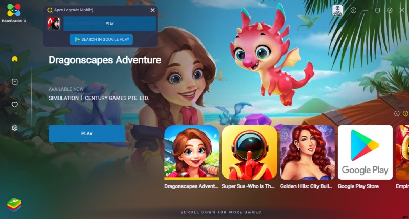- Apex Legends Mobile デスクトップ アイコンを使用するか、BlueStacks エミュレーターからゲームをプレイします
