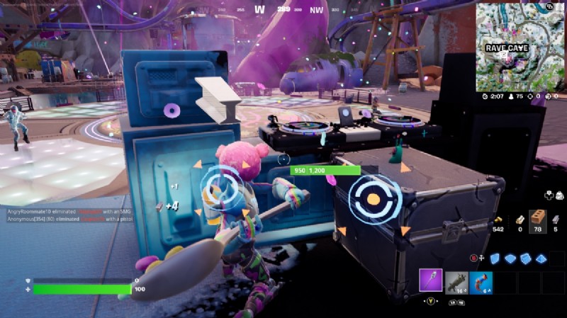 ダンスフロアのそばにある DJ ブースは、音楽をオフにするために必要な場所です。これを行う唯一の方法は、DJ のターンテーブルと両側の 2 つの巨大なスピーカーを破壊することです。彼らがいなくなり、音楽が止まるまで、収穫ツールで彼らをよく叩いてください。