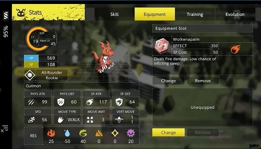 ギルモンはファイヤーウイルス型デジモン。ゲーム開始時に重宝します。さらに、最初に作成されたデジモンの 1 つであるため、シリーズのファンの多くはコレクションに入れたいと考えています。