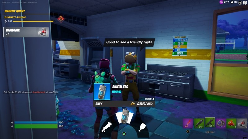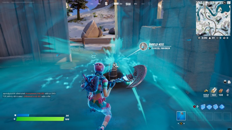 Shield Keg が機能すると、シールドを獲得しながらその横でエモートできます!このチャレンジを完了するために、長時間エモートする必要はないので、簡単なエモートを実行しても問題ありません。そうすれば、敵から身を守ることができる状態に戻りやすくなります。