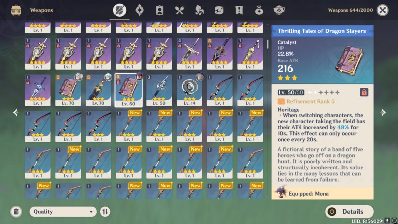 ヒーラー バーバラ ビルドの場合、スリリング テイルズ オブ ドラゴン スレイヤーズ (3*) が最適です。この武器には、バーバラの回復能力を高める HP% スケーリングがあります。最も重要なことは、最大精錬時にあらゆるキャラクターの攻撃を 48% 強化できることです。