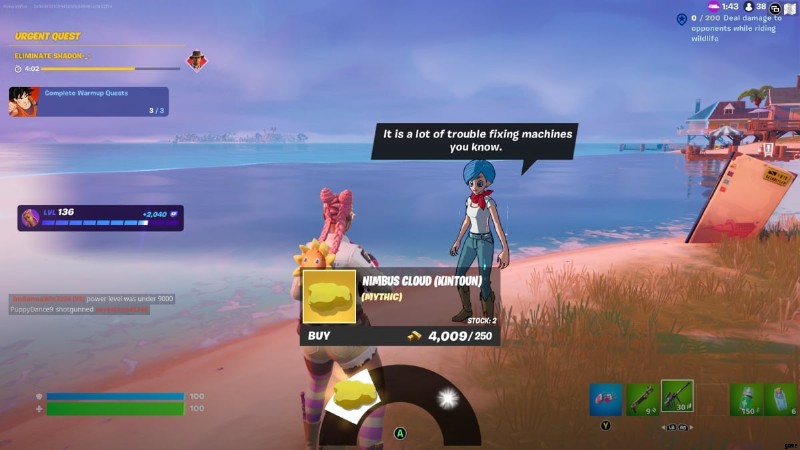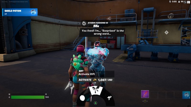 訪問者はランチパッドにいます 、デイリー ビューグルの北東にある最大の島。彼は、Rift Activation、Heavy Sniper、Storm Forecasts を販売しています。