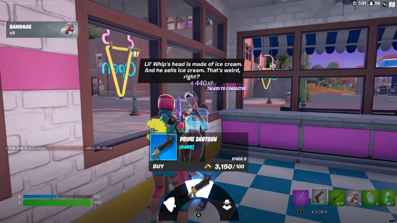 ビーチ ボンバーは、コニー クロスロードのアイスクリーム パーラーにあります。 .彼女は Rare Prime Shotgun、Shield Fish、Prop Disguise 能力を販売しています。