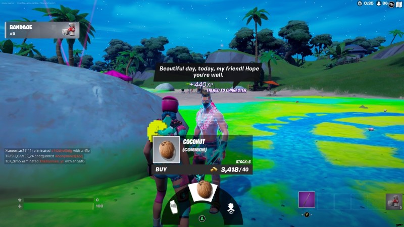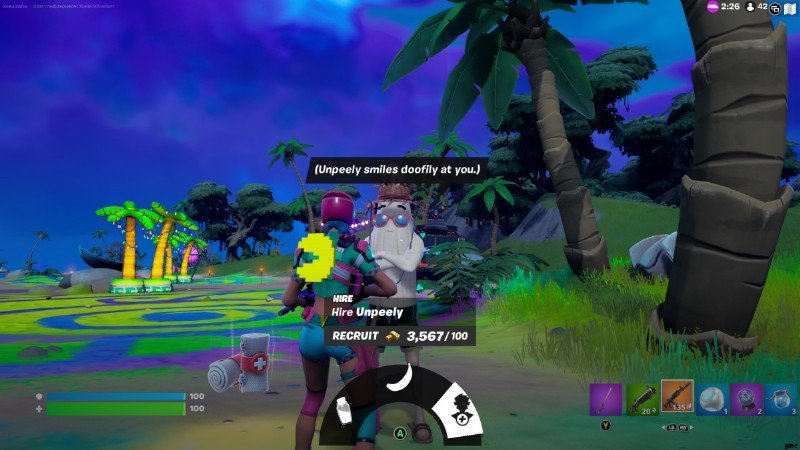 Unpeely は サンクチュアリ 近くのビーチで見つかります バナナ(ちょっと変だけどOK)、スモールシールドポーション、レンタル可能。 Unpeely、Summer Drift、Boardwalk Ruby が交互にビーチに現れます。