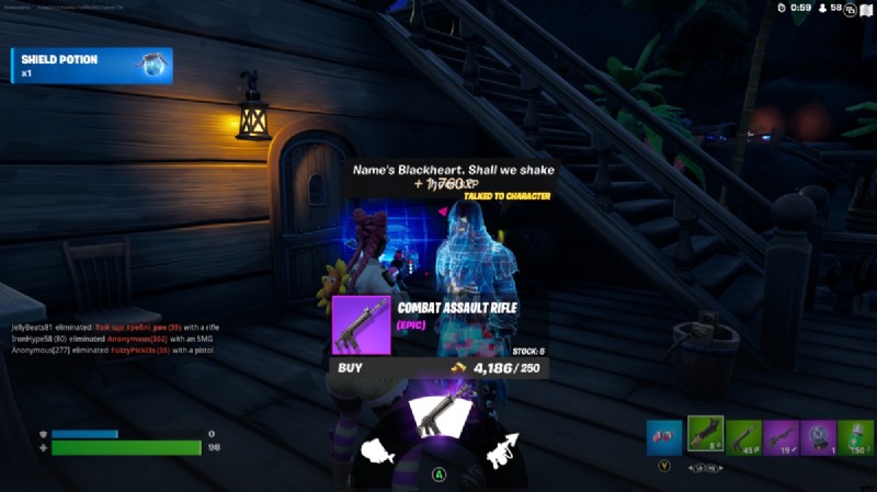 ブラックハートは レイジー ラグーン で見つけることができます コンバット アサルト ライフル、フロッパー、ハープーン ガンを販売しています。