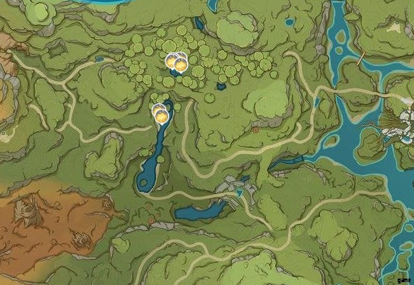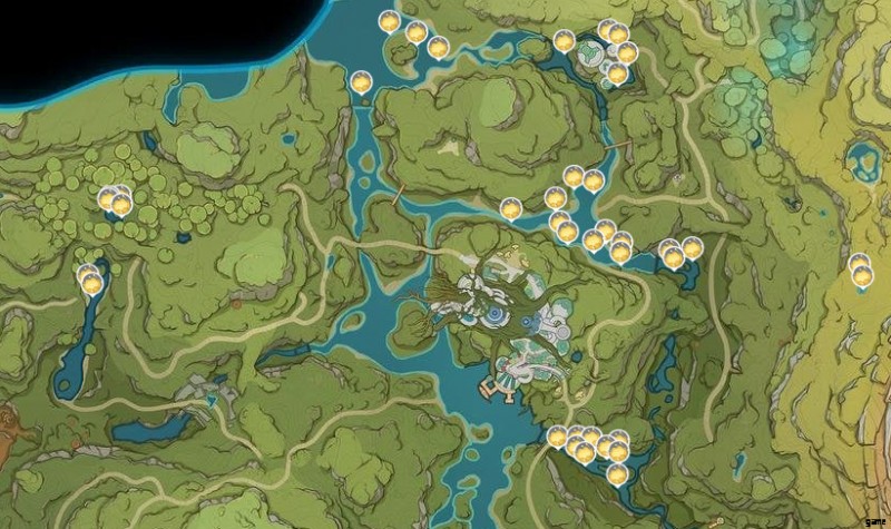 スメル市を取り囲む川にニロパラハスを見つけることができます。地域全体と比較してニロパラ ロータスの密度が最も高い地域です。これは、Nilotpala Lotus の正確な位置を共有する Genshin Impact マップのスクリーンショットです。