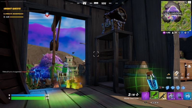 対戦相手があなたのところに来て排除するまでレイジーラグーンで待つか、他のプレイヤーによって排除されるまで待ちます-どちらの方法でも金を獲得できます!このようにして、チェストや見つけたプレイヤーを排除することで入手できる金の延べ棒は 25 個しか残っていません。