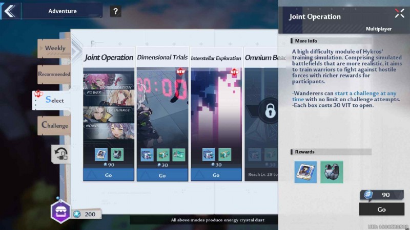 ジョイント オペレーションは、アドベンチャー メニューの [選択] タブにあります。 Tower of Fantasy で共同作戦を見つけて開始する方法は次のとおりです: