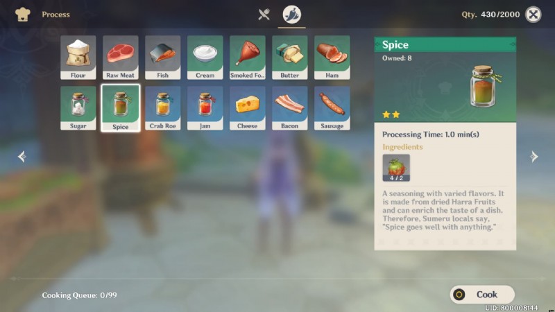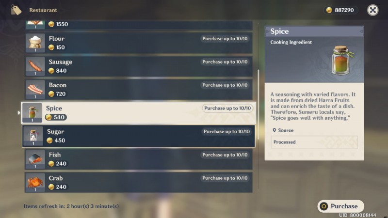 または、Teyvat の Sumeru 地域全体で見つかった Harra Fruit 成分を処理することにより、Genshin Impact で Spice を取得する主な方法を使用できます。
